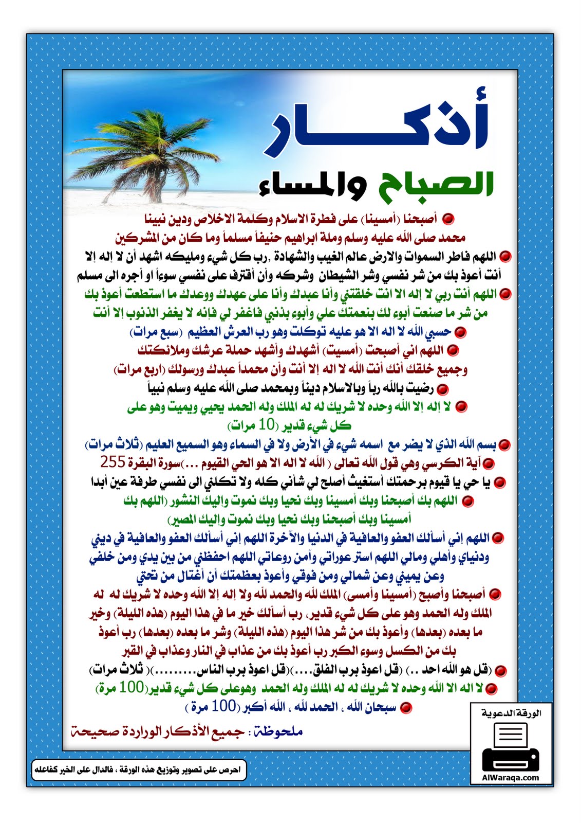 أذكار الصباح كاملة مكتوبة حصن المسلم من كل شر كنوزي