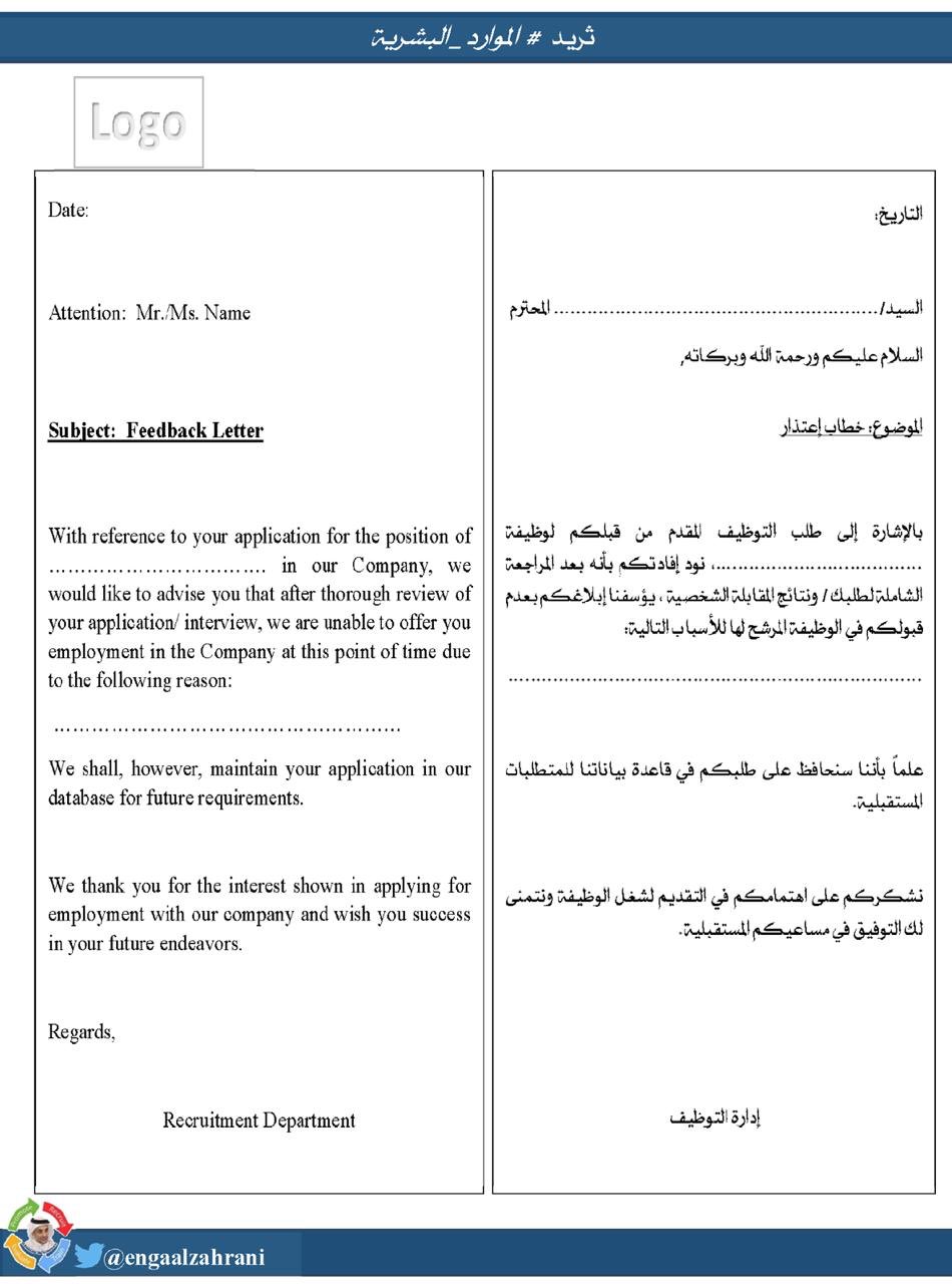 أحمد الزهراني on twitter عملية التوظيف يتبع بعد الانتهاء من عملية الاختيار يتم تقديم عرض وظيفي لمن تم قبولهم كما يتم ارسال خطاب رسالة اعتذار لمن لم يتم قبولهم وإبداء أسباب عدم القبول لكي