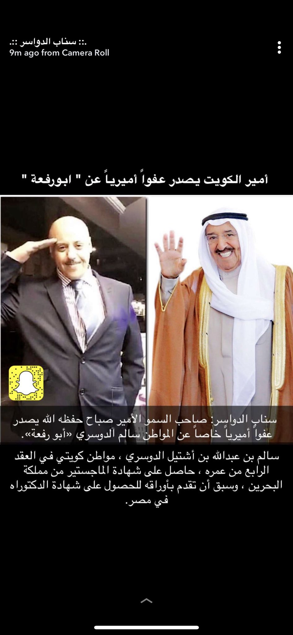 on twitter سناب الدواسر صاحب السمو الأمير صباح حفظه الله ورعاه يصدر عفوا أميريا خاصا عن المواطن الكويتي سالم الدوسري أبو رفعة الدواسر الكويت https t co i6kcdyeruo