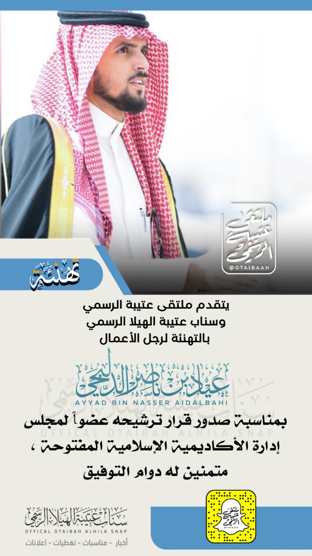 منصة قبيلة عتيبه الرسميه على تويتر الليلة الخميس تغطية خاصة عبر سناب عتيبة الرسمي المنبر الاول لقبيلة عتيبة من الرياض